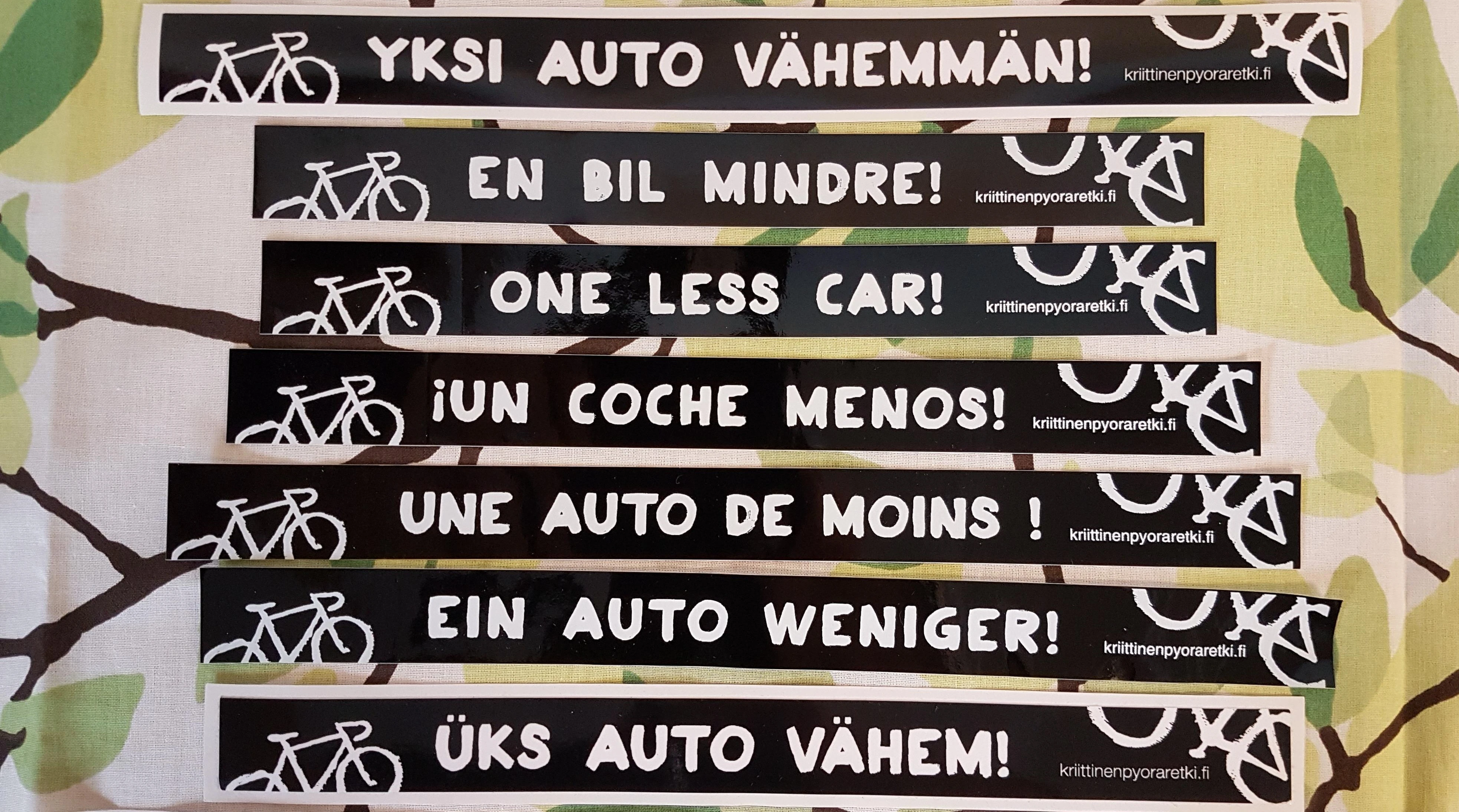 Liittymällä Maan ystävien jäseneksi autat meitä toimimaan ekologisesti kestävän ja sosiaalisesti oikeudenmukaisen maailman puolesta. Kun liityt nyt, saat lahjaksi kantaaottavan Yksi auto vähemmän -tarran pyörääsi koristamaan!