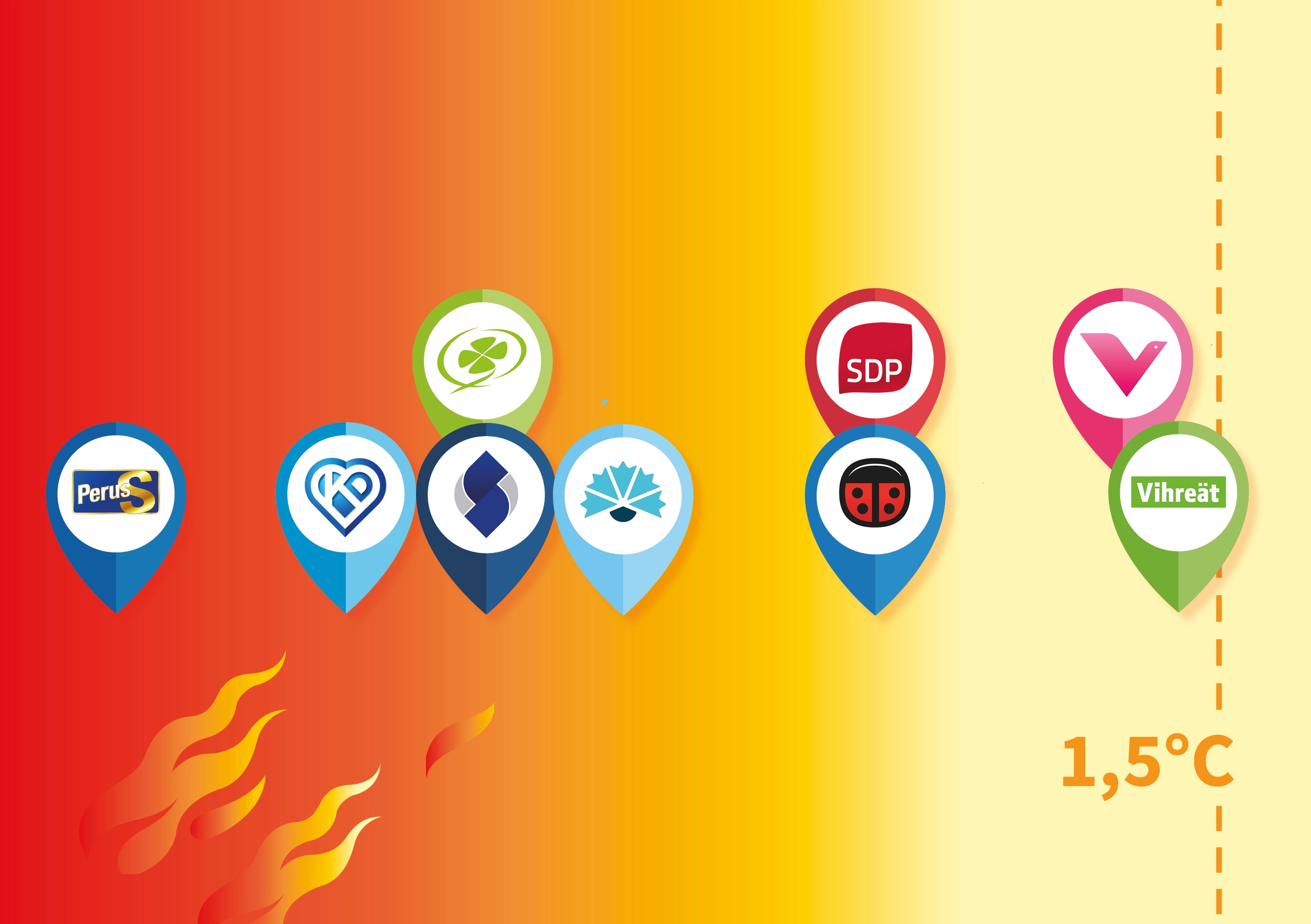 Ympäristö- ja kehitysjärjestöjen Korvaamaton-ilmastokampanjan selvityksen mukaan nykyisistä eduskuntapuolueista vain vihreät ja vasemmistoliitto ovat lähellä 1,5 asteen politiikkaa. Järjestöt selvittivät puolueiden ilmastokannat puolueille lähetettyjen kyselyjen lisäksi puolueohjelmista ja Ylen ilmastokyselystä.